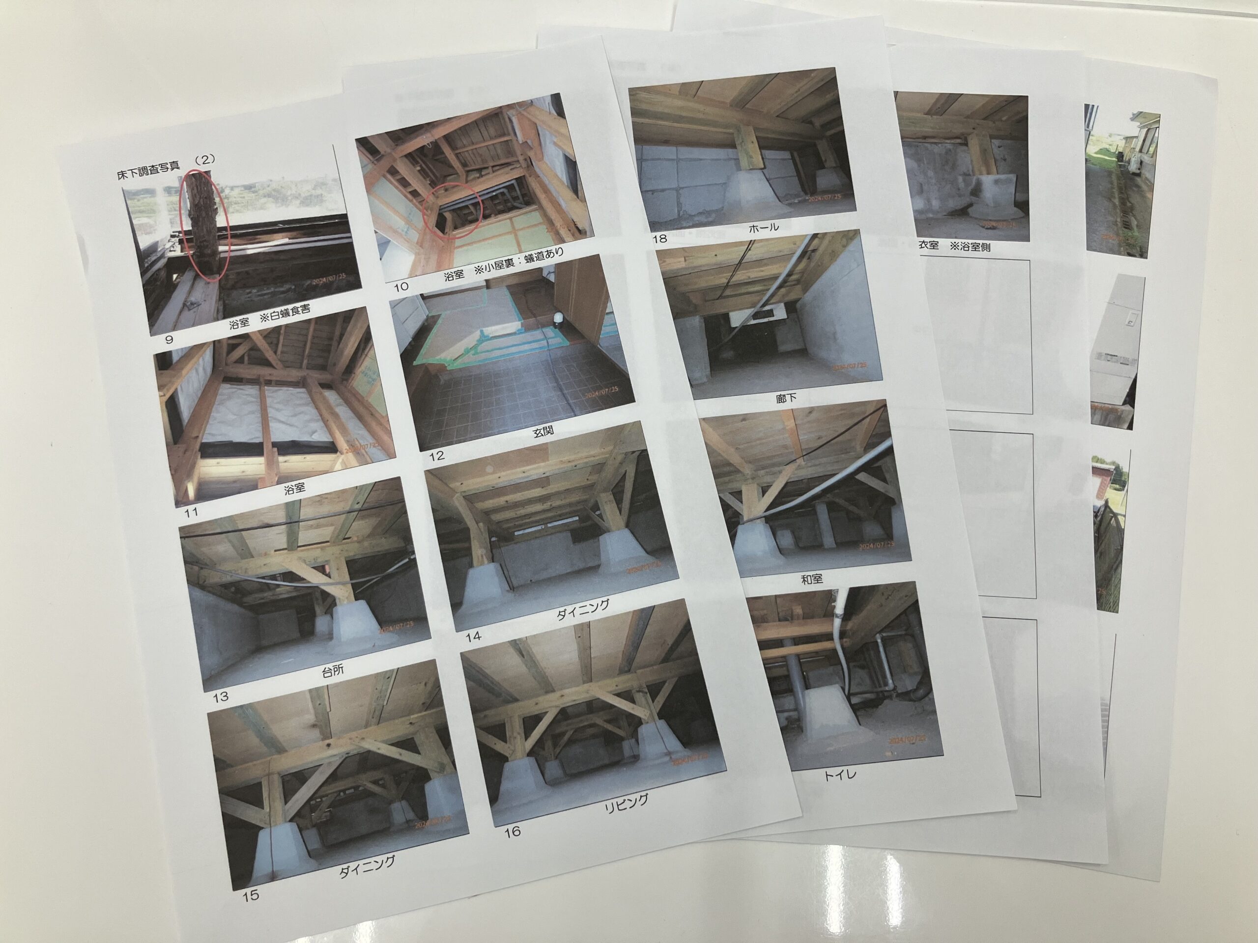 1、床下や床束柱、基礎部分