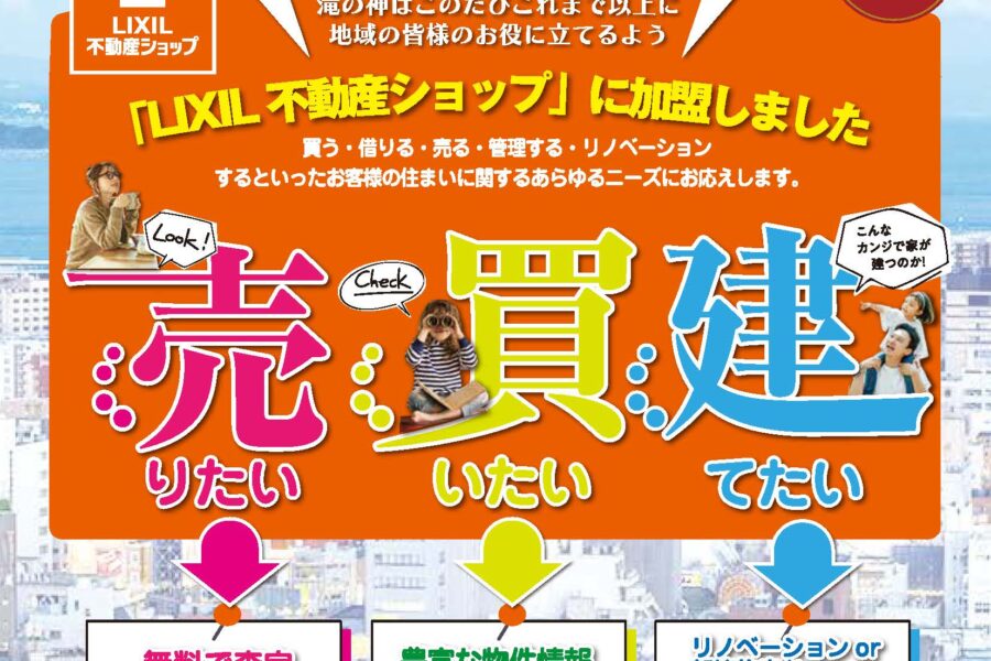 LIXIL不動産ショップ滝の神|OPEN|ホームページ情報の確認はこちらから!